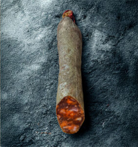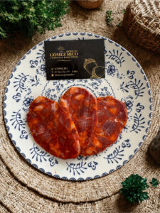 Elaborado con cerdos ibéricos criados en libertad y alimentados con bellota, este chorizo es una auténtica delicia. Su sabor intenso y su aroma ahumado se equilibran con notas dulces del pimentón, dando como resultado un bocado único. Ideal para tablas ibéricas y maridajes con vinos robustos.