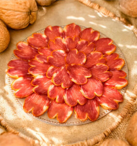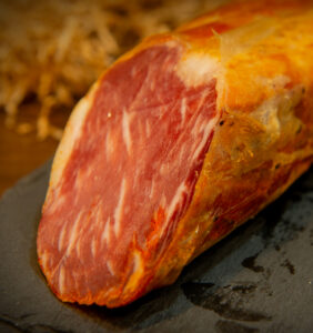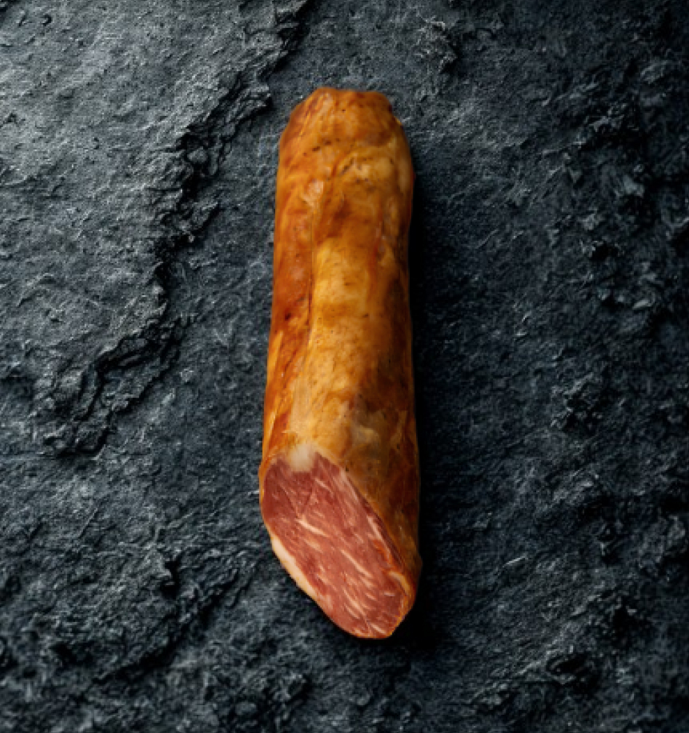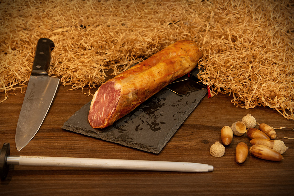 El rey de los lomos ibéricos. Procedente de cerdos 100% ibéricos alimentados con bellota, ofrece un sabor profundo, persistente y lleno de matices. Su curación artesanal resalta la nobleza de la carne, dando como resultado un producto de máxima calidad.